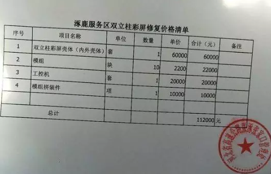 要知道一位商家按照最好的材料計(jì)算,這樣的顯示屏報(bào)價(jià)也只有1.8萬-2.5萬。真是不知道河北省高速公路張涿張家口管理處開出的清單依據(jù)是什么。