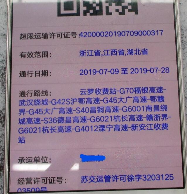 可通過(guò)《超限運(yùn)輸車(chē)輛通行證》左上角提供的查驗(yàn)網(wǎng)址(二維碼)進(jìn)行驗(yàn)證。