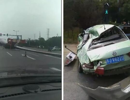 2019年10月10日上午10時左右,在疏港路228路段大橋下,一輛大貨車車上正載著一個長幾十米的風力發(fā)電葉片,在運輸途中發(fā)生滑落與一輛行駛中的出租車發(fā)生了一起交通事故,出租車已嚴重變形,所幸出租車駕駛員無大礙。