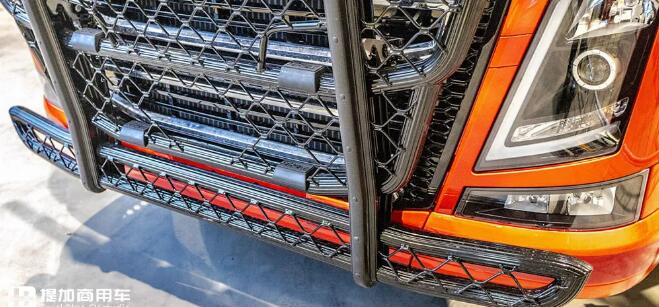 之后,車輛轉(zhuǎn)移到CCH公司,進(jìn)行結(jié)構(gòu)的適應(yīng)性改裝。車輛安裝了頂部燈架,并在上方安裝了四個(gè)大功率探照燈。為了契合整車的風(fēng)格,遮陽(yáng)板也被涂成了橘紅色。燈箱上的SVETRUCK字樣采用白色粗體,營(yíng)造出了富有活力的撞色效果。