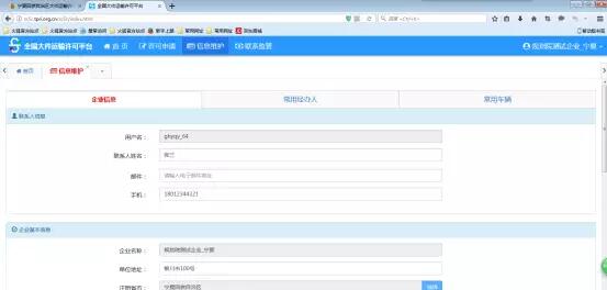 信息維護包括:企業(yè)信息,常用經(jīng)辦人,常用車輛三個模塊;