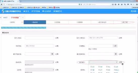 3)、按要求填寫各項申請信息,包括基礎、車貨、車輛、相關證件、護送方案信息;