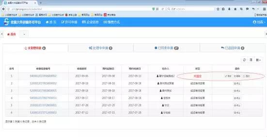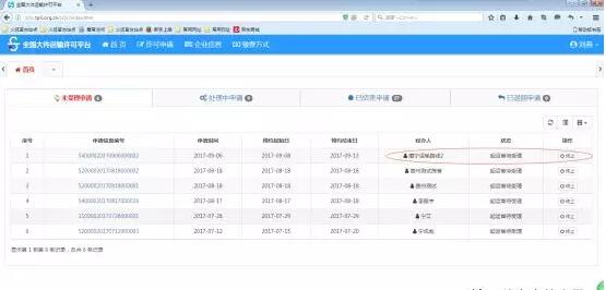 1)、企業(yè)用戶登錄首頁面,可查看處于不同狀態(tài)的申請;